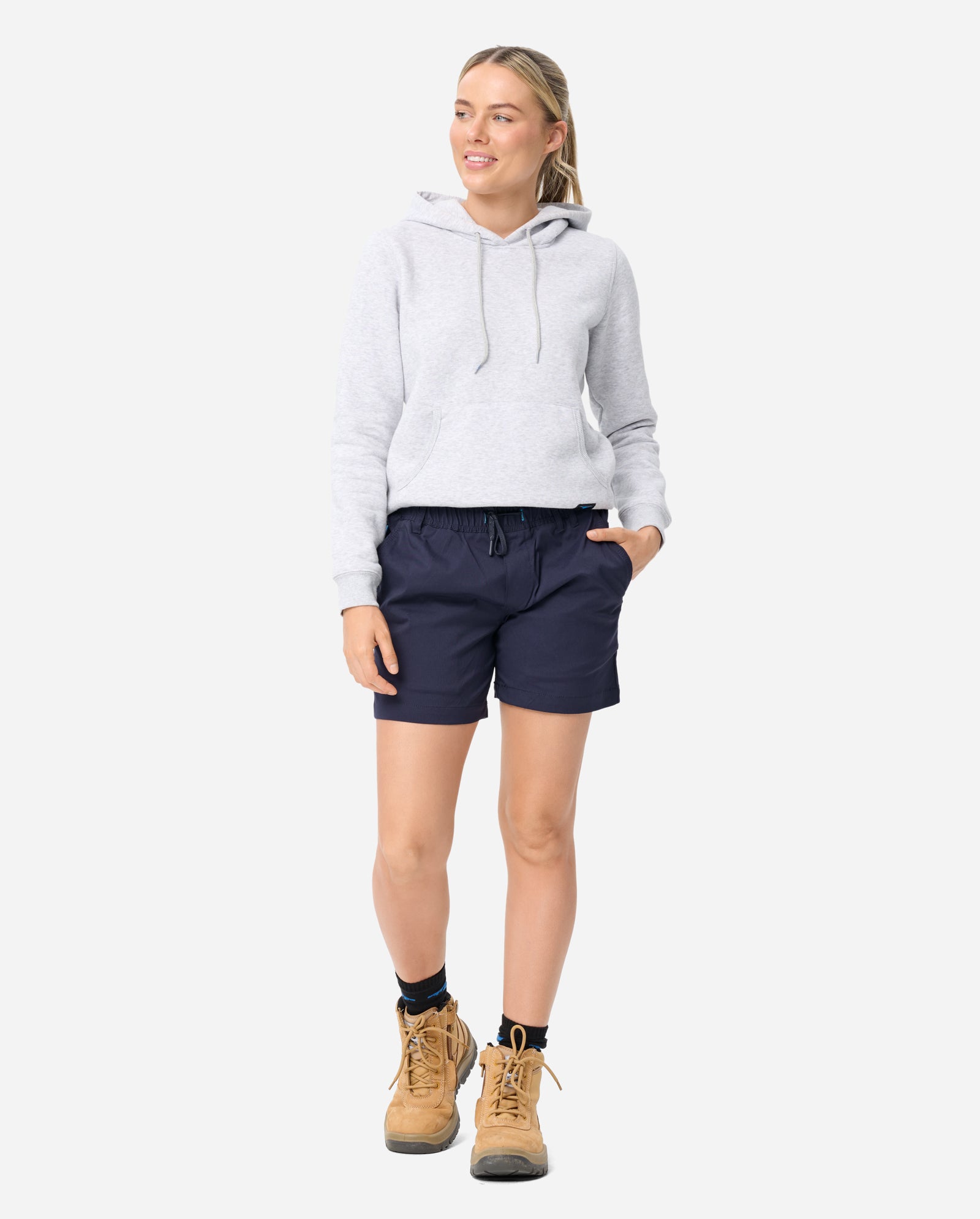 When its summer you want to be ready for the sun in our Light elastic short. The light elastic short is available in Mens and Womens. The short features a 5% stretch elastane fabric that will provide you all day comfort. The light elastic short has a drawcord with silicon to ensure it will not slip when you’re on the job site.